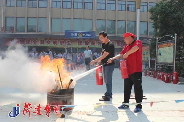 市消防公司庄兆海同志首先给大家详细讲解了灭火器灭火的的操作要领。在四个小组组长的指挥下,演练人员按照操作要领,分别进行了灭火演练。演练人员手提灭火器奔向“火灾现场”,大火在灭火器干粉的喷射下瞬间被扑灭。