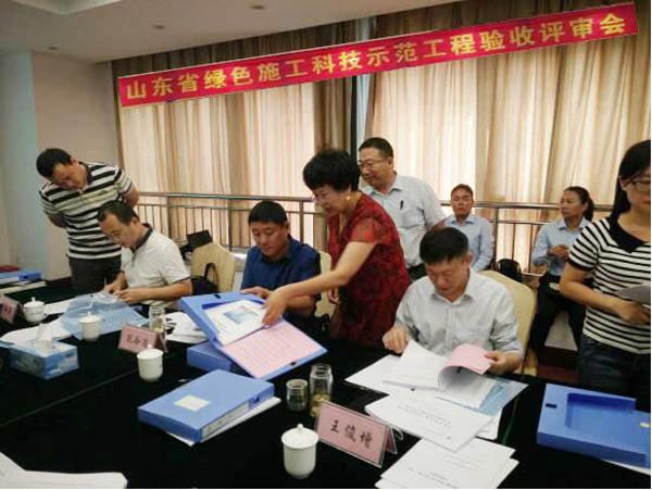 此次验收评审中,专家们对集团公司绿色施工管理工作给予了充分肯定。在该批全省12个验收评审项目中,集团综合办公楼在节能与能源利用中关于照度的设计成为此次会议的亮点,该项成果得到了专家组的表扬,并向其他企业进行了推广。验收评审组组长王俊增当场宣布集团综合办公楼通过“山东省绿色施工科技示范工程”的终期验收评审。