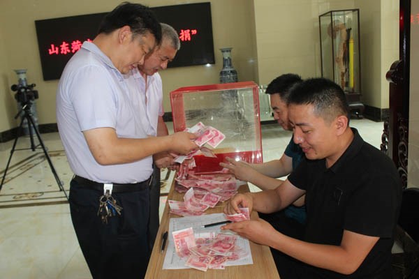 ![]() 捐 款 现 场 ![]() 工作人员清点募捐 |