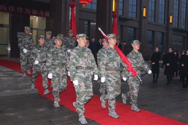 揭牌仪式前举行了升国旗仪式。mansion88明升领导、有限公司机关全体同志、各单位领导班子及临设机构全体人员参加揭牌仪式。