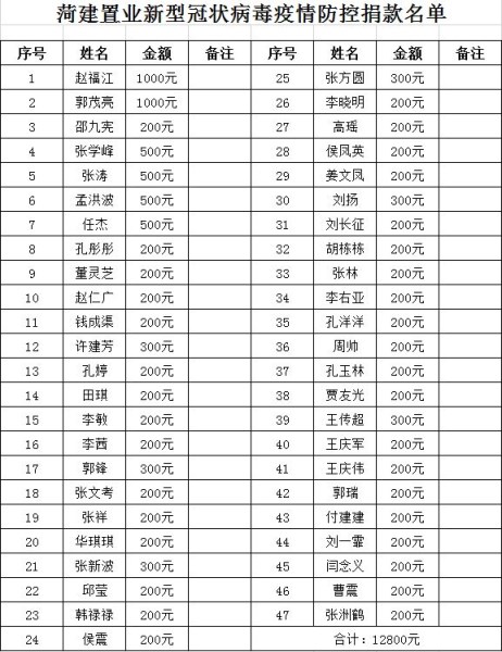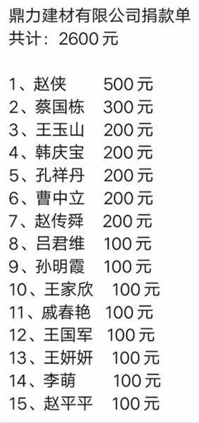 ![]() 菏建置业公司2个小时之内捐款12800元 |