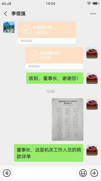 ![]() 公司党委书记、董事长李信强带头捐款2000元 |