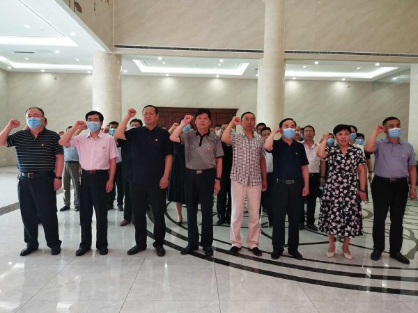 ![]() 全体参观人员高举右拳,重温入党誓词 |