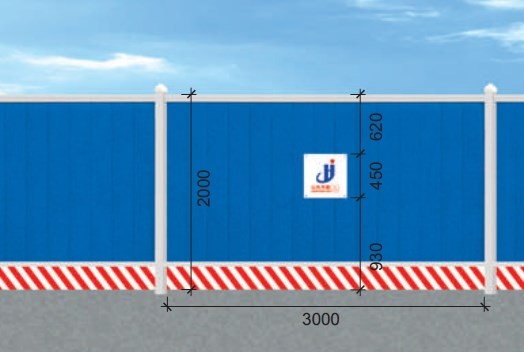 1)围挡上部1.7米为蓝色围挡,下部0.3米为红白相间挡脚板,材质均为0.8mm厚彩钢板;