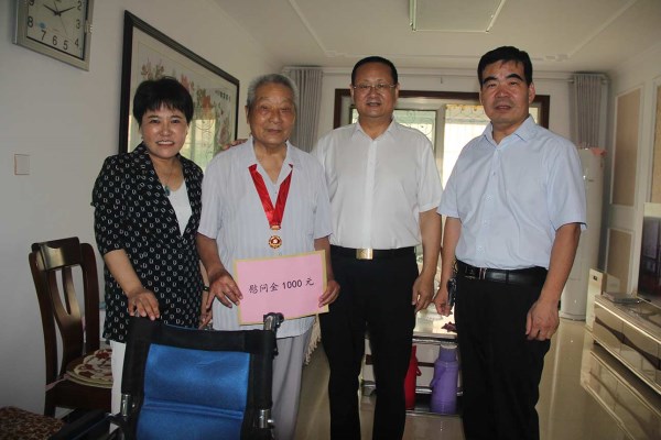 6月28日,市国资委党委委员、副主任李仰春带队走访慰问菏建离退休党员、光荣在党50年老党员、支援朝鲜建设老党员,给拥有50年以上党龄的老党员颁发“光荣在党50年”纪念章,确保党员代表“七一”前收到这份沉甸甸的荣誉。市国资委党委组织科科长田信军,mansion88明升党委书记、董事长李信强,党群工作部部长杜令瑞陪同慰问。