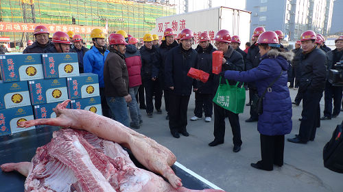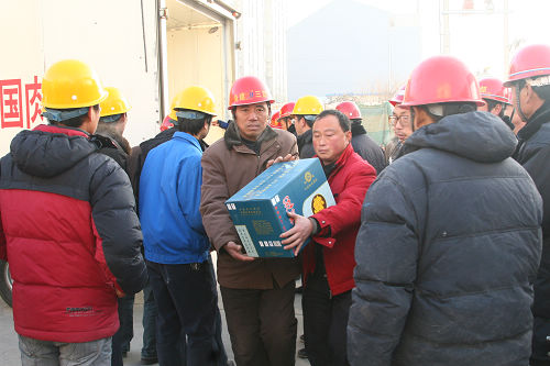 2011年1月1日上午,“元旦”之际,集团党委书记、董事长兼总经理张广周带领集团领导、各部室负责人,先后到市政府(反恐)应急中心及公安指挥中心、景岸家园和赵王河新村工地进行慰问,为一线人员送去猪肉、烟酒。