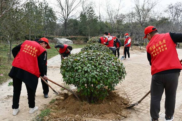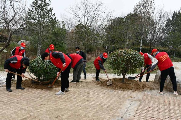 在我国第44个“植树节”当天,3月12日,mansion88明升组织40余名菏建志愿者到曹州牡丹园开展“共植一片绿 春满牡丹城”青年职工义务植树文明实践志愿服务活动。