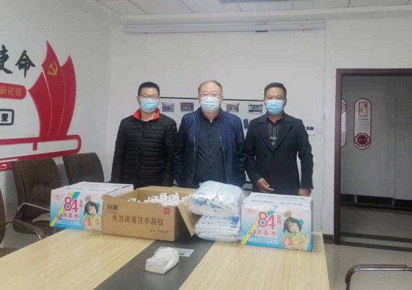 ![]() 为一线干部职工送去口罩、84消毒液、消毒凝胶、酒精等防疫物资 |