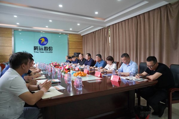 随后考察团一行与腾远股份进行了座谈,腾远股份总经理陈俊宗介绍了公司的发展历程和现状,公司从2011年开始发展,注册资金18166万元,目前拥有巴顿菲儿德等生产线120余条和多项专利,管道年产能30万吨、管件年产能6000吨,拥有13大生产基地,是集研发、生产、销售为一体的高新技术企业。苏红军对其发展成果给予了充分肯定。双方就项目合作相关内容发表了各自意见和建议。