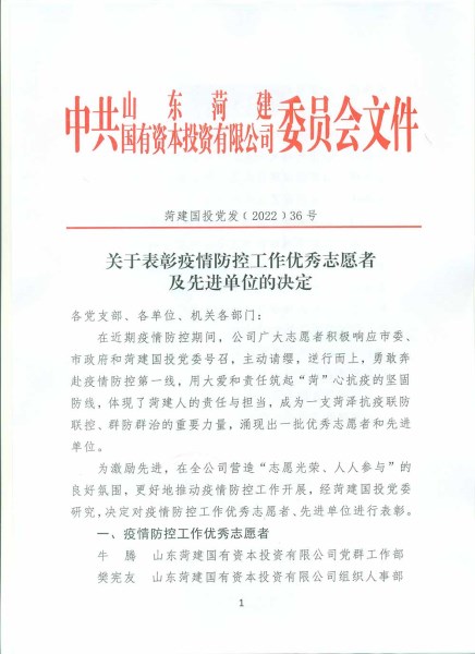 通过本次表彰活动,在全公司营造了“志愿光荣、人人参与”的良好氛围,菏建志愿者们以无畏的勇气、无私的精神,以实际行动展现了国企员工的责任与担当。下一步,mansion88明升将以此次表彰活动为契机,继续弘扬“奉献、友爱、互助、进步”的志愿服务精神,坚决打赢疫情防控攻坚战。