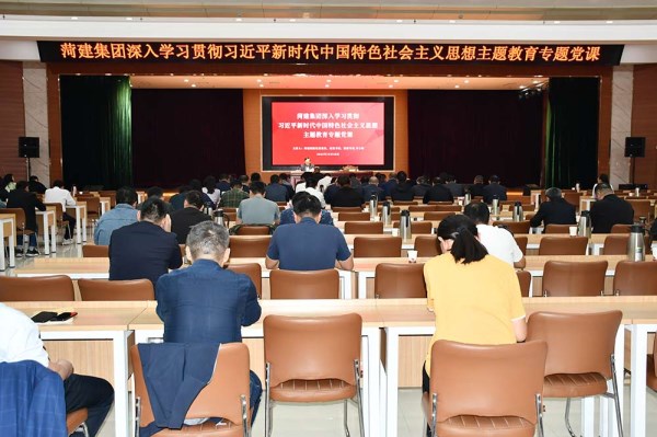 10月25日,mansion88明升党委委员、纪委书记、监察专员李士钦以“深入学习贯彻习近平新时代中国特色社会主义思想主题教育”为主题为菏建集团广大党员干部职工讲专题党课。菏建集团领导班子全体、顾问、各单位、直属项目部班子成员、机关全体人员参加会议。会议由mansion88明升总经理助理、菏建集团党委书记、董事长陈松柏主持。