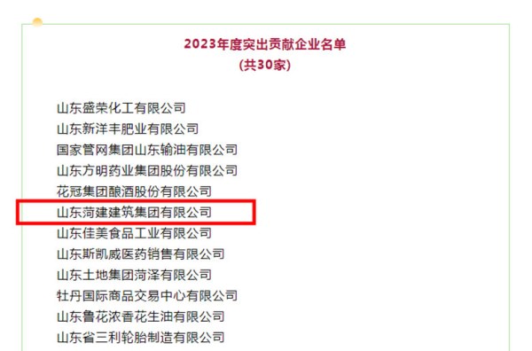 菏建集团被菏泽市委、市政府评为2023年度突出贡献企业