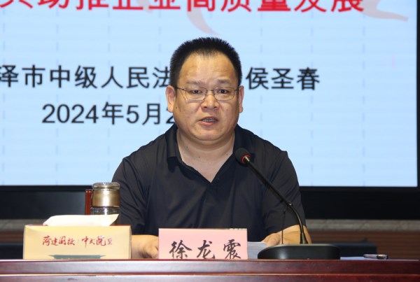 徐龙震指出,要将《民法典》、习近平法治思想、《菏泽市优化营商环境条例》《公司法》《企业国有资产监督管理暂行条例》等列入重点学习内容;要加强《民法典》学习宣贯,特别是总则编、合同编的学习,树立依法经营理念,防范经营合同风险;要学好用好法律规定,维护企业合法权益,对于恶意拖欠工程款、材料款的企业和个人,要运用多种法律手段,最大限度回收账款;要树立底线意识、规矩意识,严格遵守各项法律法规,做到全面合法合规,全面推进依法治企,树立“法治菏建”品牌。