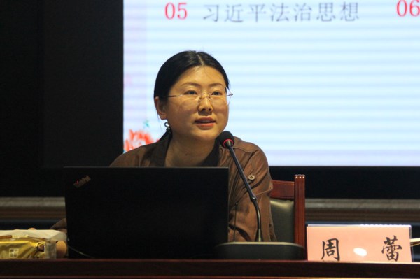 在宣讲中,周蕾以“习近平文化思想”为主题,从充分认识习近平文化思想的重大意义、深刻领会习近平文化思想的鲜明特征及丰富内涵、深入贯彻习近平文化思想的实践要求、深刻把握习近平文化思想的原创性贡献等四个方面,详细阐述了习近平文化思想的道理、学理、哲理以及中华优秀传统文化的丰富内涵,和大家共同探讨了如何在全球化背景下保持和发展本民族文化特色、如何处理好文化传承与创新的关系、如何让传统文化在现代社会中焕发出新的生机与活力等问题。