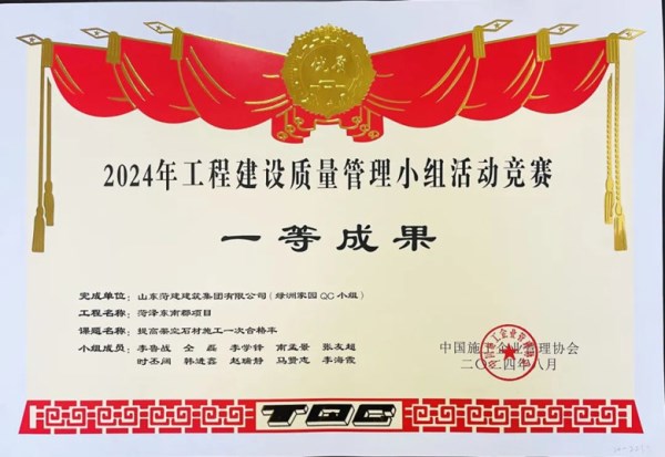 此次荣誉的获得,大大激励了菏建集团质量技术管理人员参与QC小组活动的热情,集团将继续深入持久地开展QC活动,以此次获奖为契机,进一步激励QC小组成员积极创新,以围绕管理提升和技术革新工作为目标,解决施工中遇到的重点难点,全面提升QC小组活动的质量,切实提高企业质量管理水平,力争在更高层级的平台取得更好的成绩。