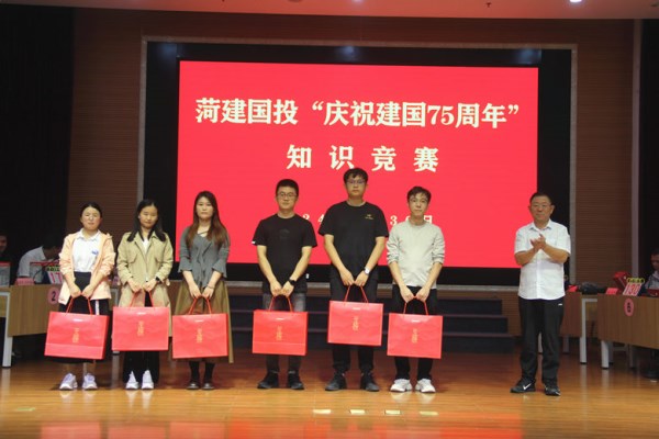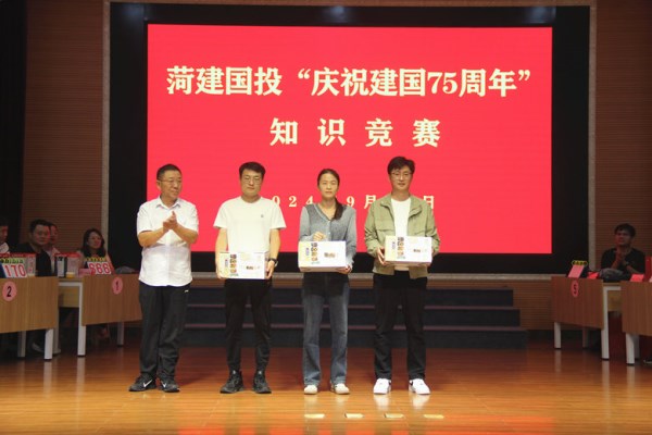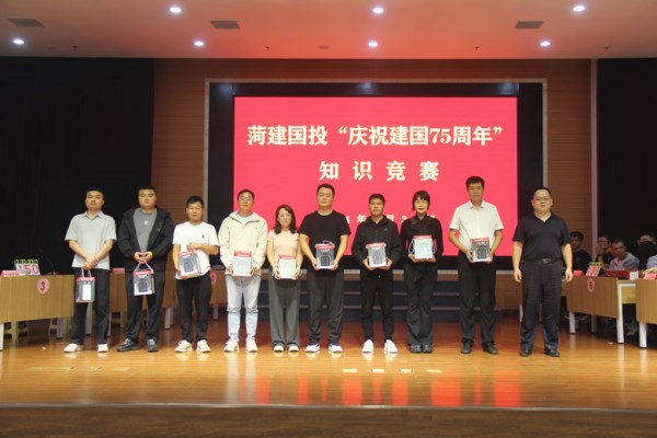 为庆祝中华人民共和国成立75周年,切实增强公司广大干部职工的国家认同感、民族自豪感、历史使命感和“听党话、跟党走”的思想自觉,9月30日下午,菏建mansion88明升工会联合党群工作部开展“庆祝新中国成立75周年”知识竞赛活动。mansion88明升党委副书记、纪委书记贾照军,副总经理徐龙震为获胜队伍进行颁奖。