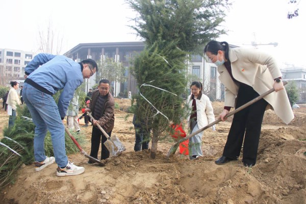 在全国第47个植树节来临之际,3月11日,mansion88明升机关党支部组织开展“党建领航青绿,共建美丽家园”主题党日活动,到菏建·东方樾府进行义务植树。