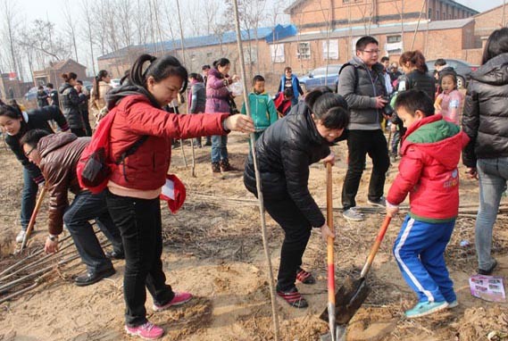 上午8时,大家准时来到集合地点,一起前往牡丹区沙土镇北大洼生态园植树现场。在参加了由市文明办、团市委、大众网菏泽站主办的简短启动仪式后,大家便争先恐后地投入到劳动当中,有的是全家齐上阵,小朋友们也挥锨铲土,毫不示弱。大家相互配合,挖坑、放树、埋土、浇水,每一个环节认真细致,确保提高树苗成活率,活动现场展现出其乐融融的劳动场面。