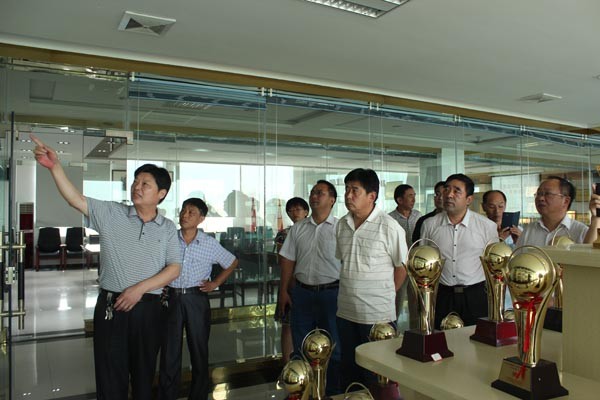 集团党委书记、董事长、总经理李信强(左一)带领与会人员参观集团荣誉室