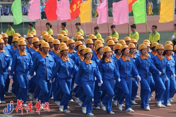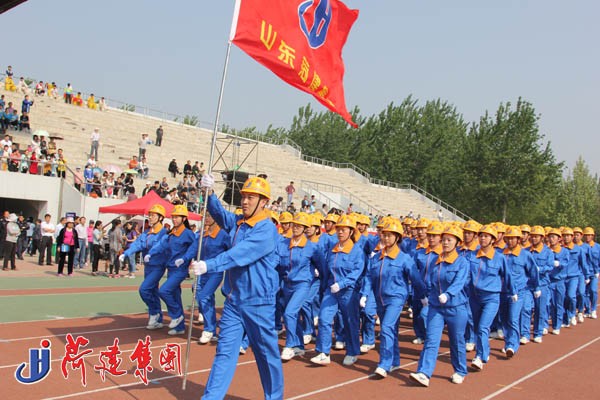 入场式上,集团组成65人方队,他们身着统一鲜明的服装,头戴集团标识安全帽,踏着雄壮的《运动员进行曲》,高呼“团结拼搏、求真务实,开拓进取、争创一流”的口号,精神抖擞,整齐划一,尽情展现了菏建人的魅力,展示出菏建人昂扬向上的精神风貌,成为开幕式上一道绚丽的风景线,赢得了主席台上省、市领导和现场观众的一致好评。