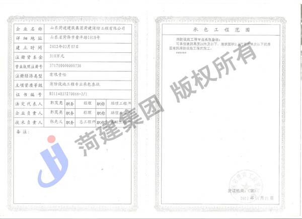 消防设施工程专业承包叁级