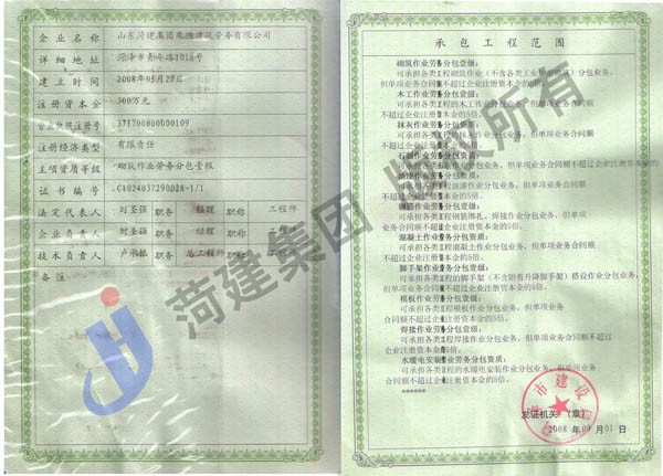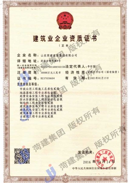 ![]() 市政总承包贰级资质 地基与基础工程专业承包壹级 起重设备安装工程专业承包贰级 防水防腐保温工程专业承包壹级 钢结构工程专业承包贰级 建筑装修装饰工程专业承包壹级 机电设备安装工程专业承包贰级 建筑幕墙工程专业承包贰级 古建筑工程专业承包贰级 |